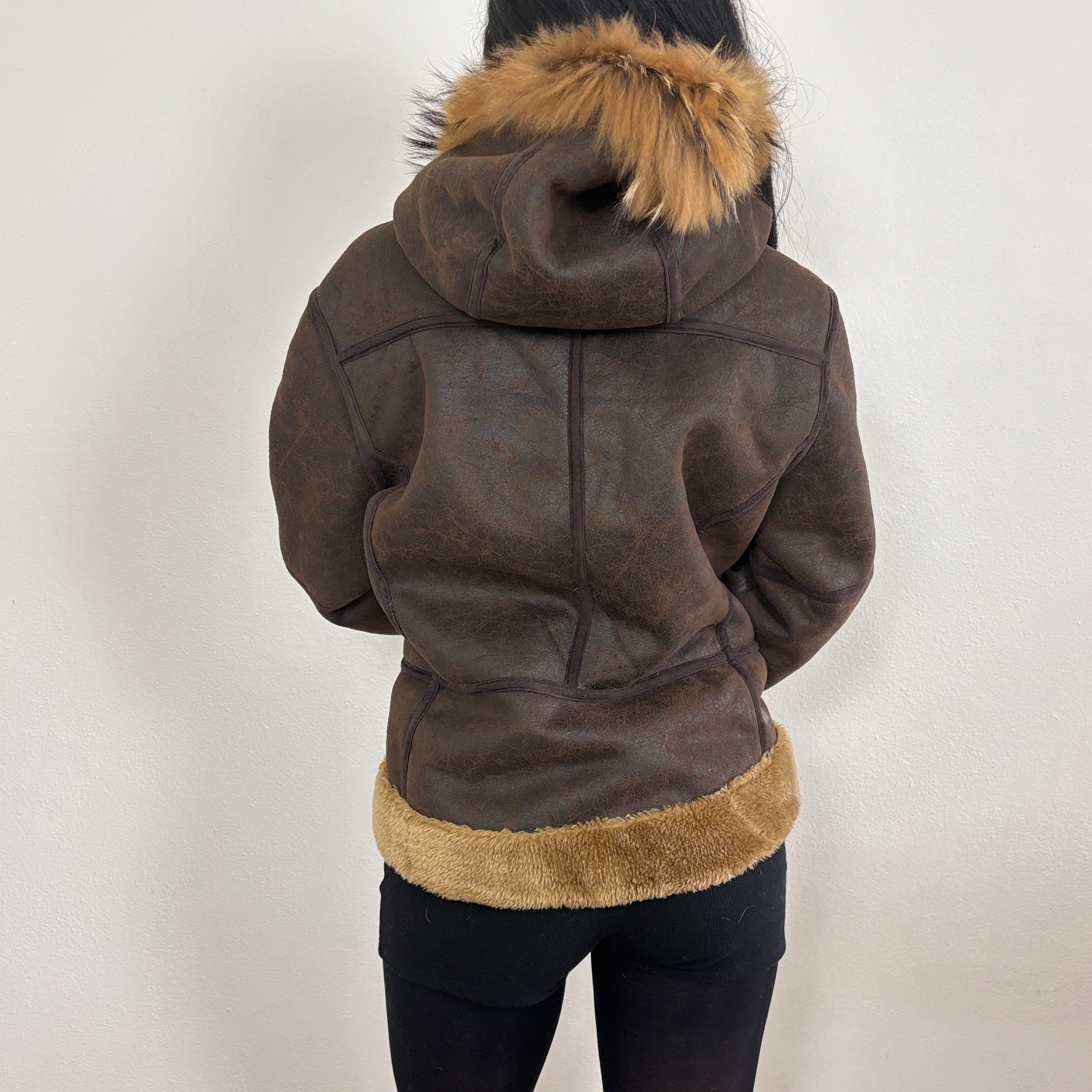 Italian brand warm brown jacket with faux fur hood. Lined inside, super warm.
