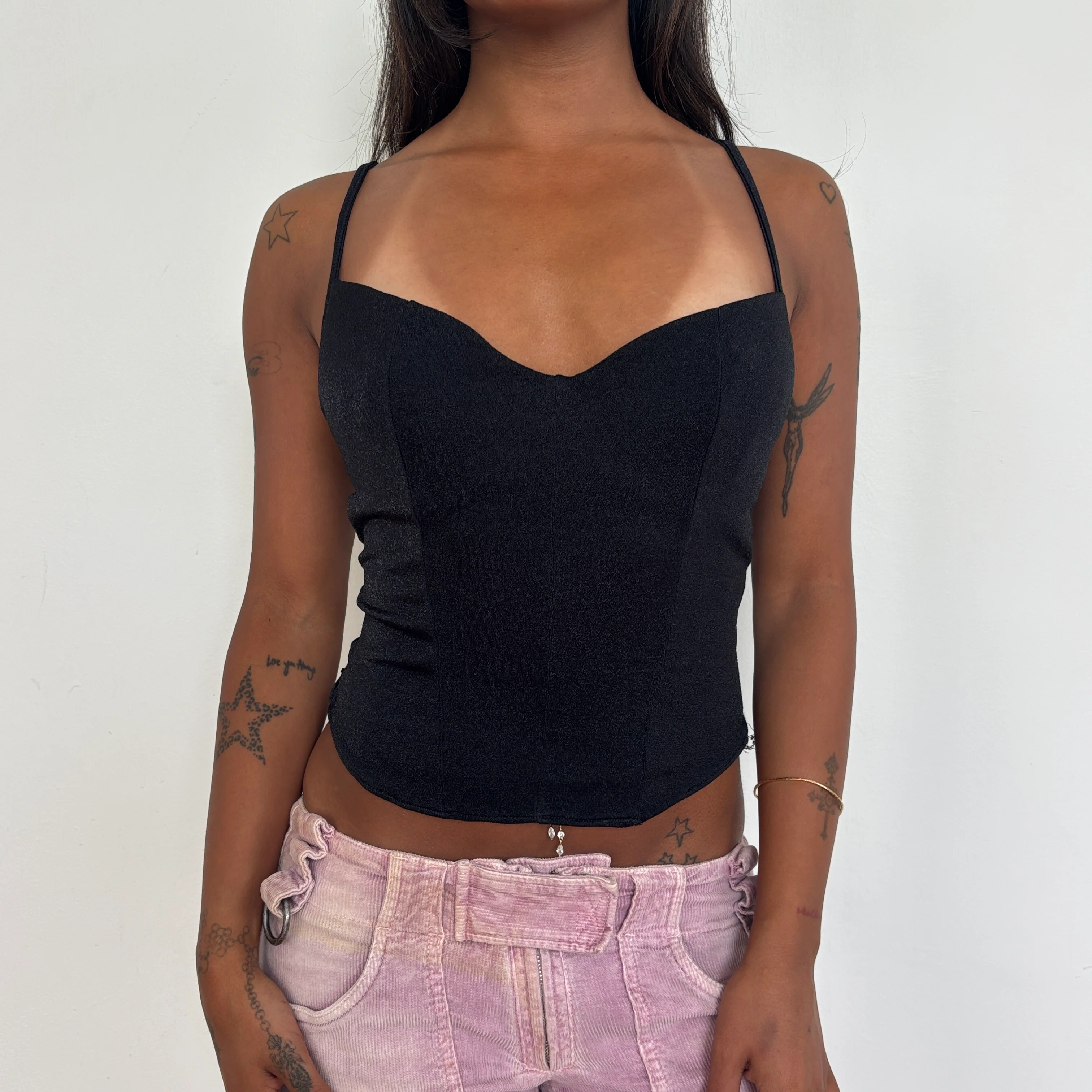 Super hot black sparkly Italian made corset top, extremely flattering. Best fit cup size b/c - d