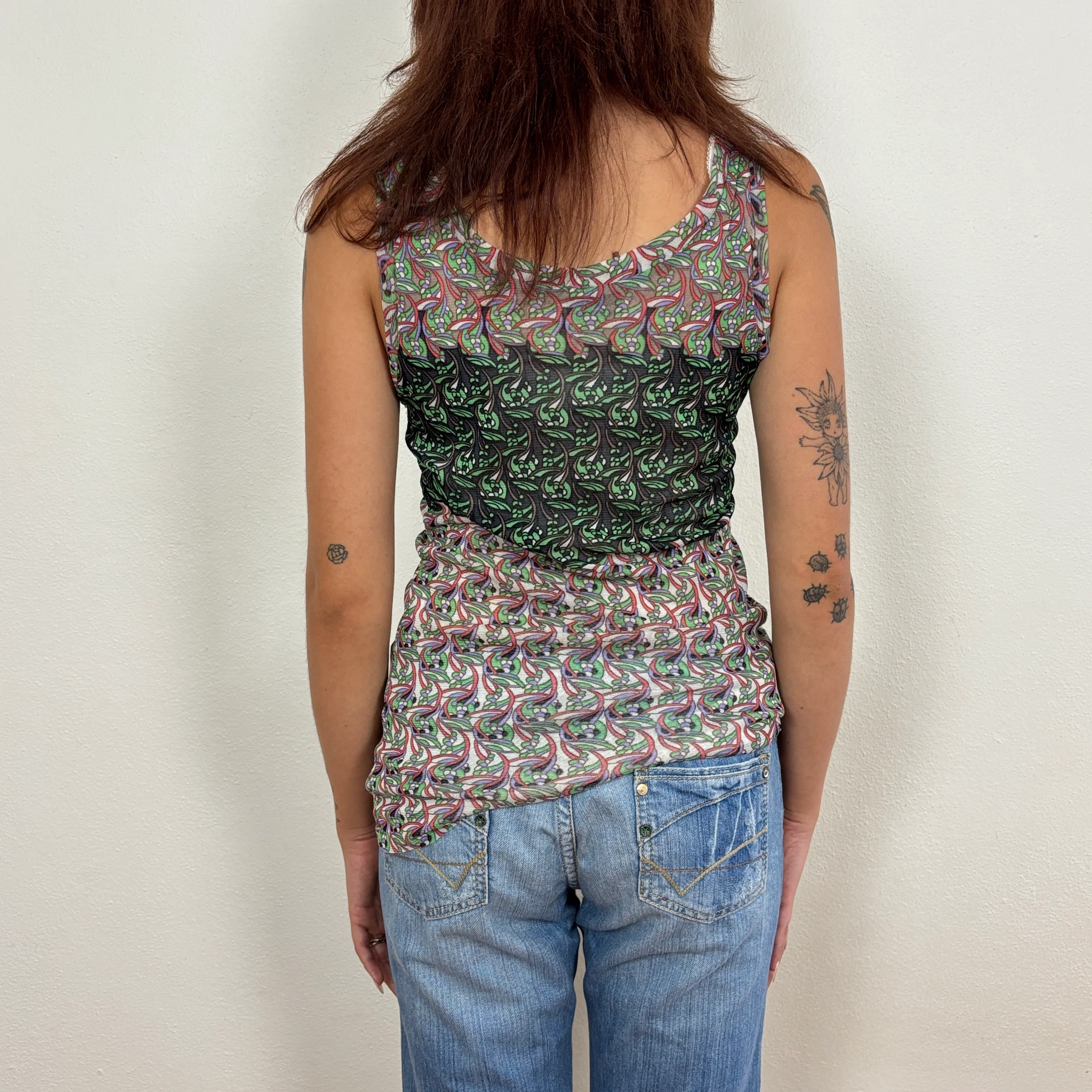 Italian graphic mesh top - M